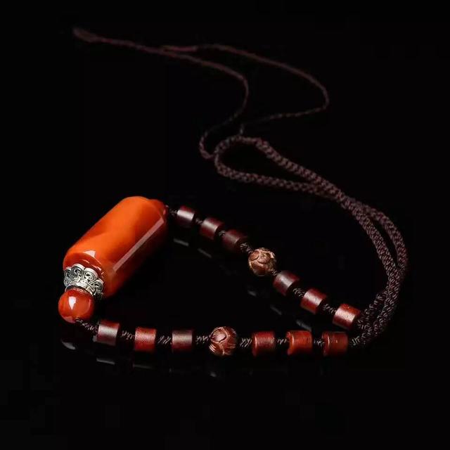 南红火焰红主要出自四川凉州,非常适合制作吊坠、大珠子和无雕刻的素面扳指等饰品。深受南红玩家的喜爱。