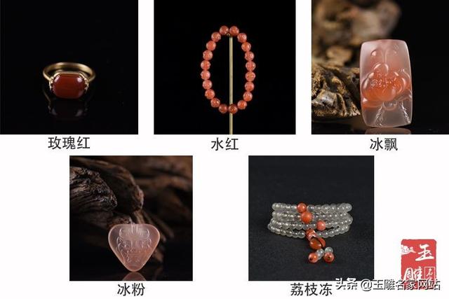 玫瑰红颜色像玫瑰一样红中带紫,水红颜色比较浅,像在樱桃红中兑了水之后的颜色,冰飘是在白色的冰地上带有红色的飘花,冰粉颜色很浅,是朱砂点零散分布后呈现的粉色效果,荔枝冻颜色像荔枝肉一般,朦胧细腻。从保山南红颜色分类图集中,大家应该了解南红的颜色分类了吧,好了,关于保山南红颜色分类图解讲解就到这了,如果大家还想了解更多的南红知识,可以关注我们玉雕名家头条号,玉雕名家有最全面和最丰富的知识在等你。