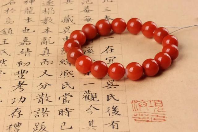作为佛家七宝之一的它,被视为可以辟邪气。同时,戴南红也代表着鸿运,坊间至今流传着“南红不红,一生受穷”的说法。