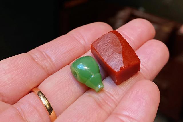 南红的柿子红碰上松石的将军绿,两个皆是一身素衣,谁更美?