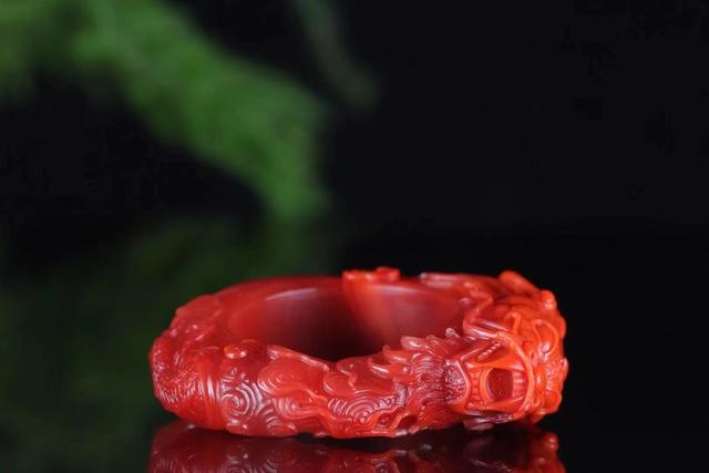 就像今天的这件扳指乍一看就是红色玉石雕刻的龙,而细品其气势与工艺非常考究,如果自身做派比较粗俗那真是枉费了这一圈好玉。