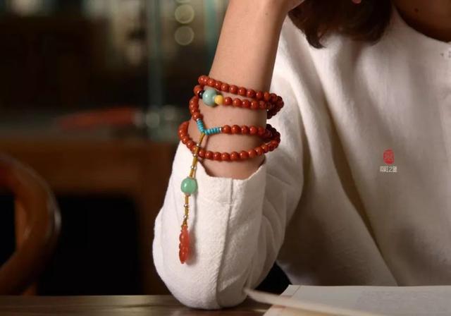 以南红所制成的佛珠,藴涵着深刻的内涵,蓄纳了佛家的光明与智慧,直到现在,都深受人们的喜爱。
