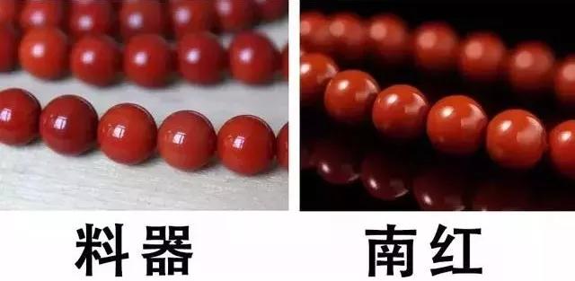 看质地:南红比较偏砖红色,料器偏橙红色,颜色更阳。