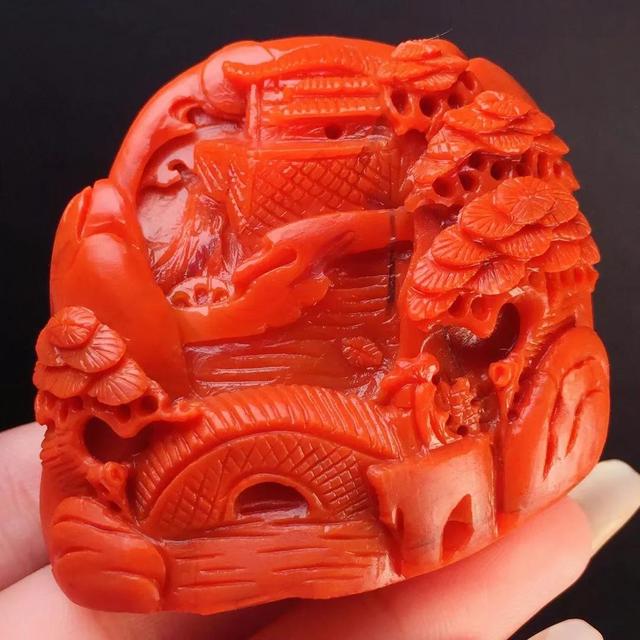 收藏级精品保山雕刻摆件——松下老人,山水象征着幸福安逸,老人在这秀丽的山水中怡然自得配上南红玉质,雕工精湛,色红色鲜,尺寸:158*194.6*52.4mm,重2723克有够大,分享每日作品...